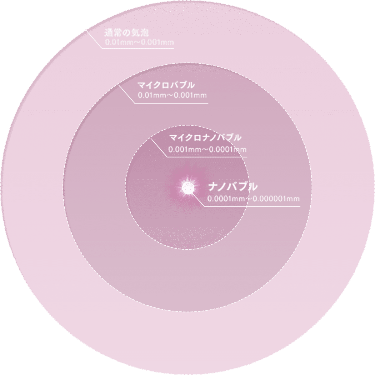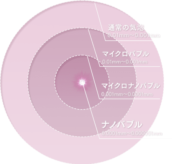 超微細気泡が発生ナノバブルは非常に小さい気泡のため、髪の毛や頭皮の細かい隙間に入り込み、濃密泡がケア成分の浸透力をアップします。